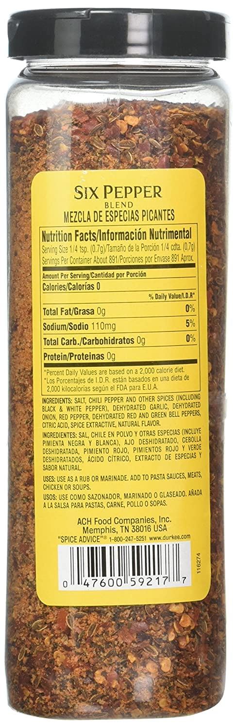 Enhance Your Culinary Creations Transform your cooking with this versatile seasoning, perfect for grilling, roasting, or baking. Sprinkle it on during the cooking process to infuse your dishes with a burst of flavor or use it as a recipe ingredient by replacing the salt in your original recipe. For optimal results, start with 1/4 teaspoon per serving, then taste and adjust to suit your preferences. This seasoning adds a delightful kick to chicken, shrimp, burgers, steaks, rice, and vegetables, and works wonderfully on eggs, salads, hash browns, and baked potatoes. Convenient and Practical Packaging Designed with ease of use in mind, the seasoning comes in clear packaging with slip-guard side grips for a secure hold, minimizing the risk of spills or drops. The shake/pour cap offers flexibility, allowing you to sprinkle or pour the seasoning based on your needs. Whether you're a home cook or a professional chef, this practical packaging ensures a seamless cooking experience. Bilingual Labels for Accessibility Each product features bilingual labels in English and Spanish, making it accessible to a diverse range of customers. The easy-to-read labels provide quick access to essential information, while the complete nutritional panels help you make informed decisions about your food intake. This thoughtful design ensures convenience and clarity for all users.