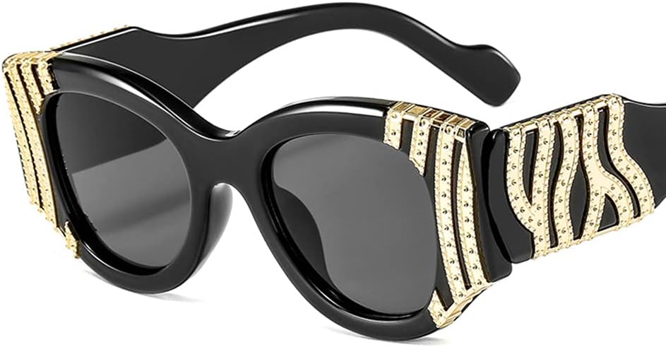 Style: Fashion Sunglasses Lenses Material: Resin Frame Material: PC, Optical Attribute: UV400 Frame Color: 7 Colors available Black and Leopard, White, Red, Black Leopard, Blue Product Name: Gold Wave because of gold designer wave pattern on the Frame. Designer created elegant frame, Strong and Graceful wearing. Packed in MariaKinz Signature Leather Case.