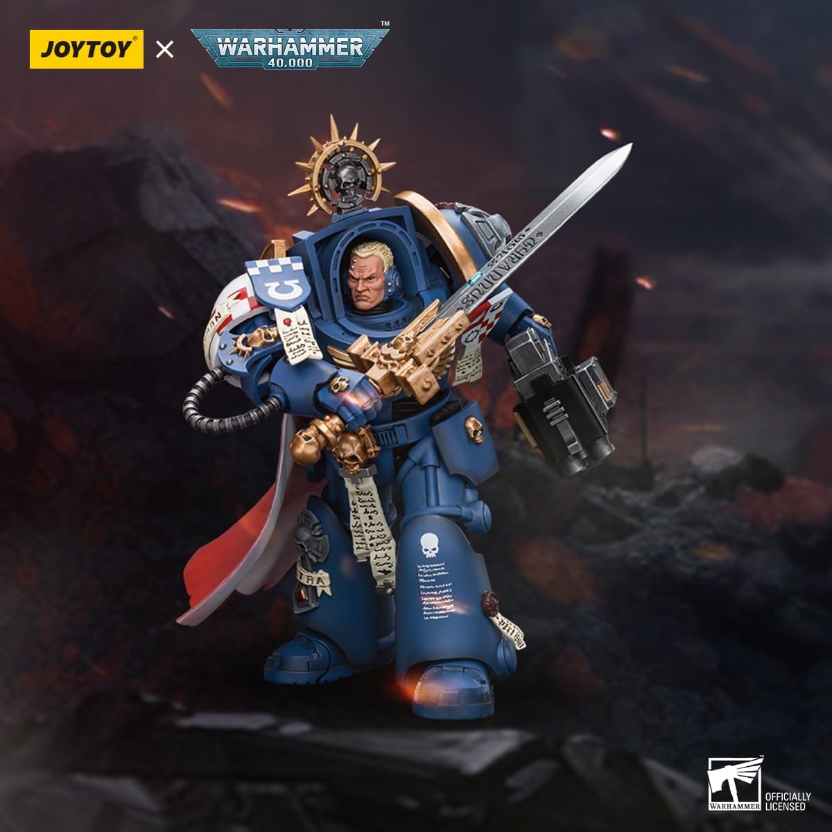 From JoyToy (Beijing) Tech Devco. Introducing the awe-inspiring JoyToy WH40K Ultramarines Terminator Captain Severus Agemman - a commanding presence in the Warhammer 40,000 universe. Standing at 14.3cm (5.63 inches) tall and meticulously crafted at a precise 1/18 scale, this figure embodies the leadership and strength of the Ultramarines. Made out of ABS and PVC, it guarantees durability while showcasing extraordinary detail. Primarily based on Warhammer 40K lore, it captures the essence of Captain Severus Agemman with meticulous attention to detail and complete articulation, making it a standout addition to any collection.